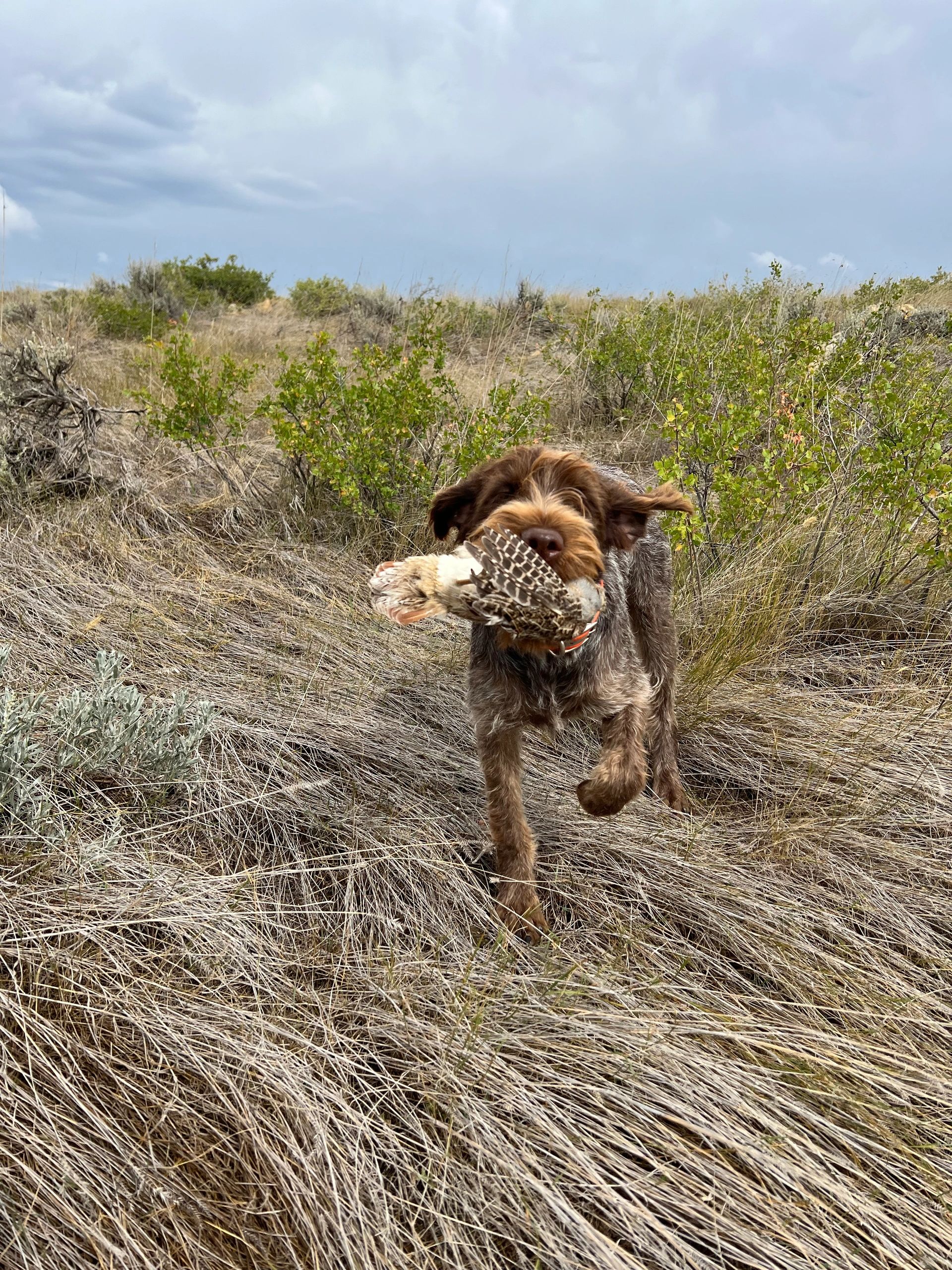 This is a repeat pairing from this past Winter. Roe and Baz produced a large litter of wonderful pups with one already earning herself a max score 112 Prize 1 on her NAVHDA Natural Ability test at 5 months old!